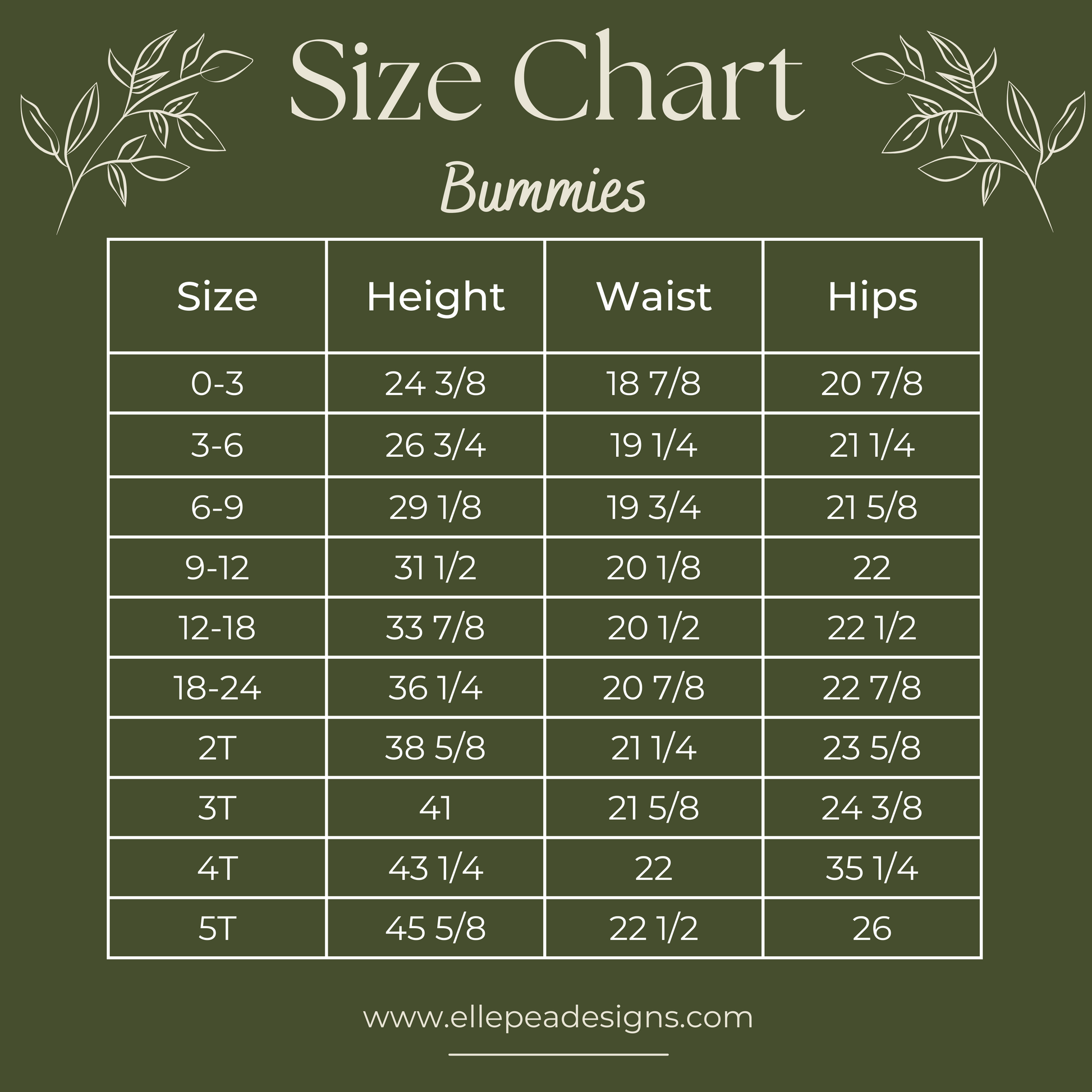 Make sure and check the size Guide for measurements! Each pattern differs slightly depending on the company that created the pattern.