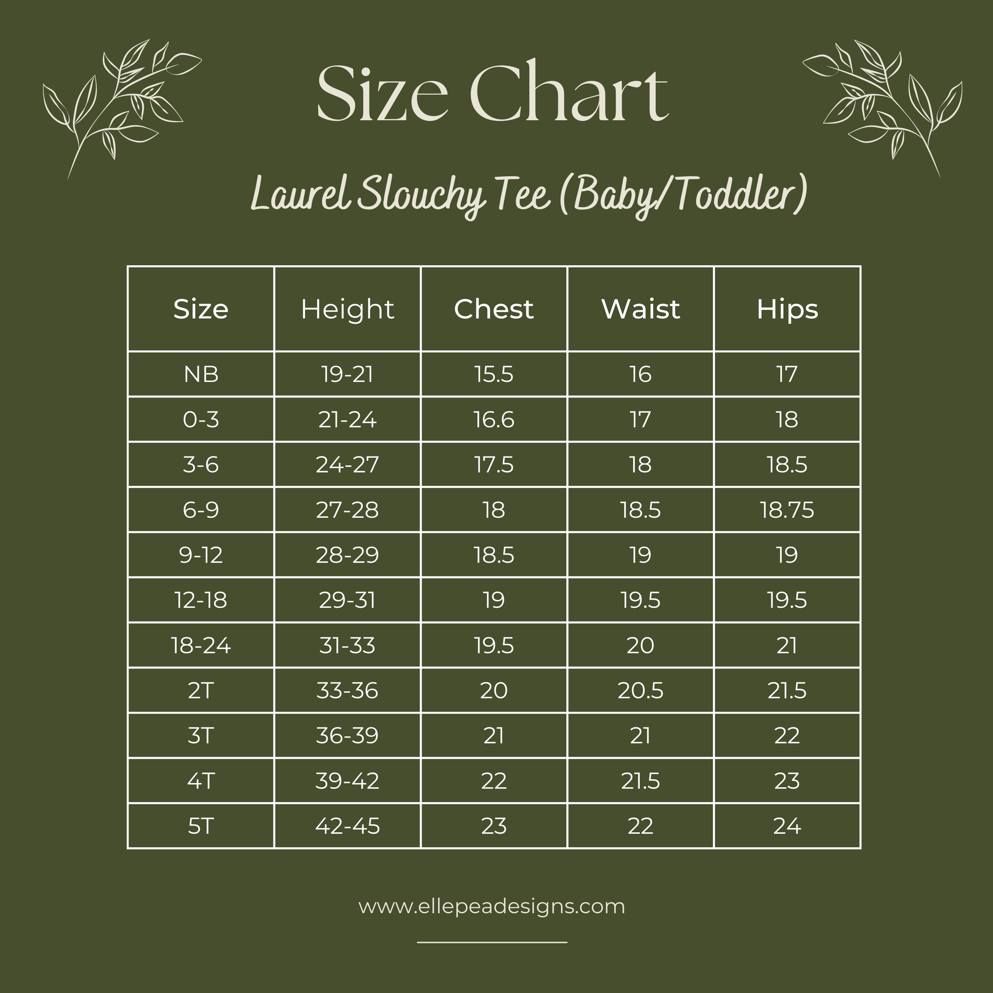 Make sure and check the size Guide for measurements! Each pattern differs slightly depending on the company that created the pattern.