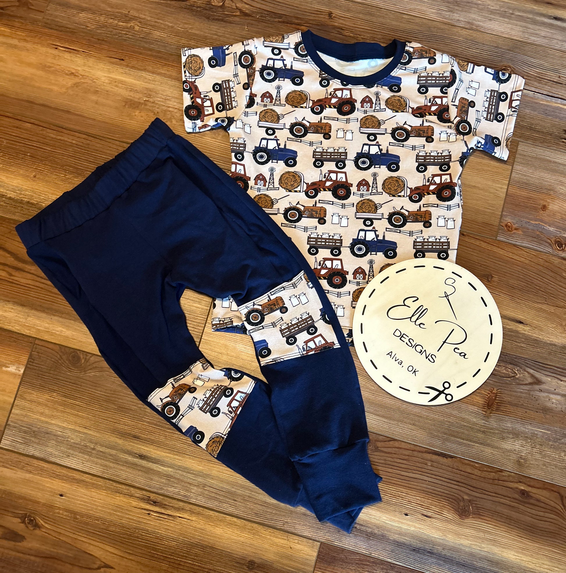 This is shirt and joggers set is made with Cotton Spandex. A great transition outfit from winter to spring